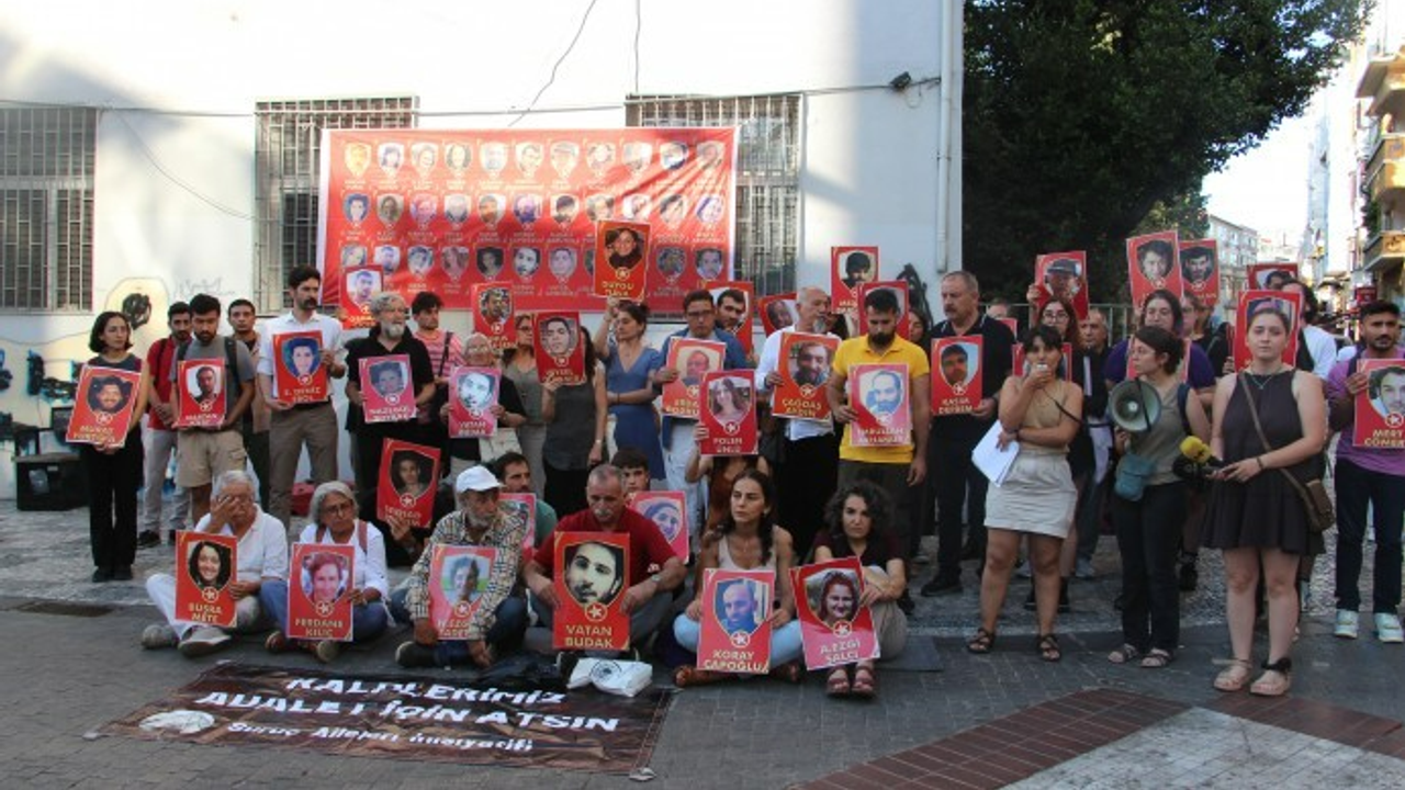İzmir'de, Alsancak Türkan Saylan Kültür Merkezi önünde bir araya gelen grup, "Hiçbir düş yarım kalmayacak" pankartı açtı. Sık sık "Suruç için adalet herkes için adalet", "Katil IŞİD iş birlikçi AKP" sloganları atılırken, katliamda yaşamını yitirenlerin fotoğrafları taşındı.