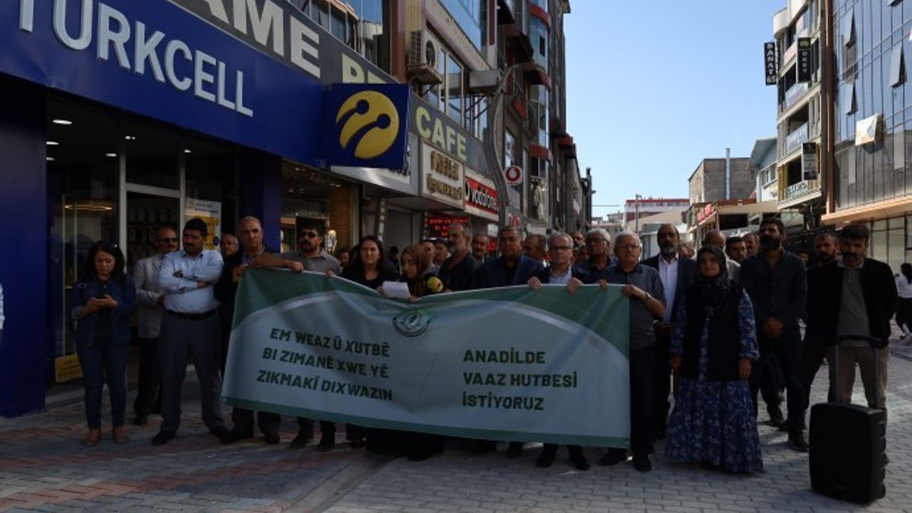 Van Alimler Derneği ve Demokratik İslam Kongresi (DİK) Van’da Kürtçe vaaz ve hutbenin serbest olması talebiyle açıklama gerçekleştirdi. Sanat Sokağı’nda yapılan açıklamada “Kürtçe Vaaz ve Hutbe istiyoruz” pankartı taşındı.