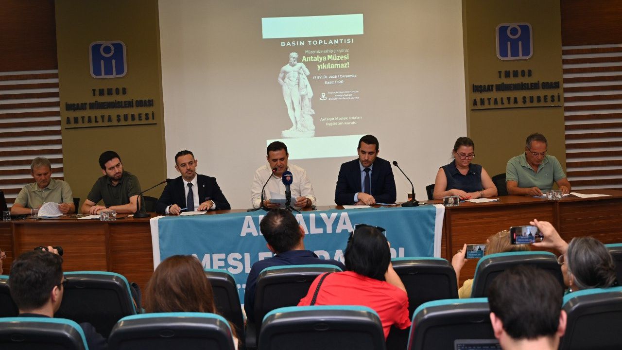 Antalya Meslek Odaları Eşgüdüm Kurulu, Antalya Arkeoloji Müzesi’nin bir gecede yıkılmasına sert tepki gösterdi. İnşaat Mühendisleri Odası Antalya Şubesi’nde yapılan ortak açıklamada sürecin bilimsel raporlara dayandırılmadığı, kamuoyunun yanıltıldığı ve milyonlarca liralık kamu zararına yol açıldığı vurgulandı.