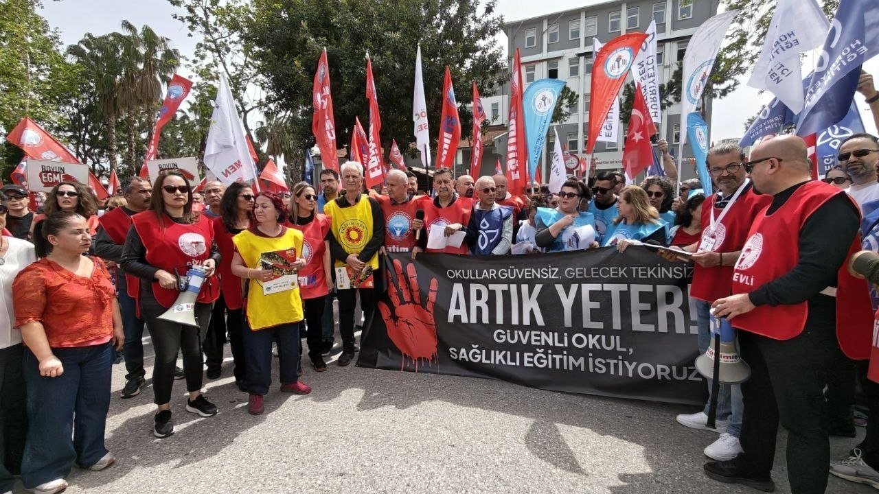Eğitim sendikaları, okullarda artan şiddet olaylarına dikkat çekmek amacıyla ülke genelinde iş bırakma eylemi gerçekleştirdi. Antalya’da Eğitim Sen, Eğitim-İş, Eğitim Gücü Sen ve Hürriyetçi Eğitim Sen üyeleri, İl Milli Eğitim Müdürlüğü önünde bir araya gelerek yaşanan şiddet olaylarını protesto etti.