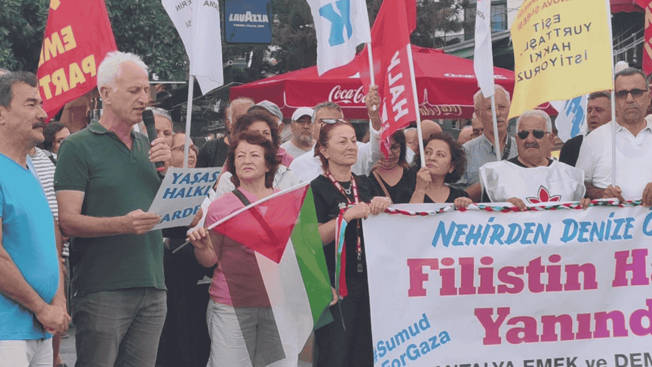 Eğitim Sen Antalya Şube Başkanı Kadir Öztürk, basın açıklamasında İsrail'in Gazze'deki ablukayı "organize bir soykırıma" dönüştürdüğünü belirtti ve Filo'nun amacının bu ablukayı delmek olduğunu vurguladı.
