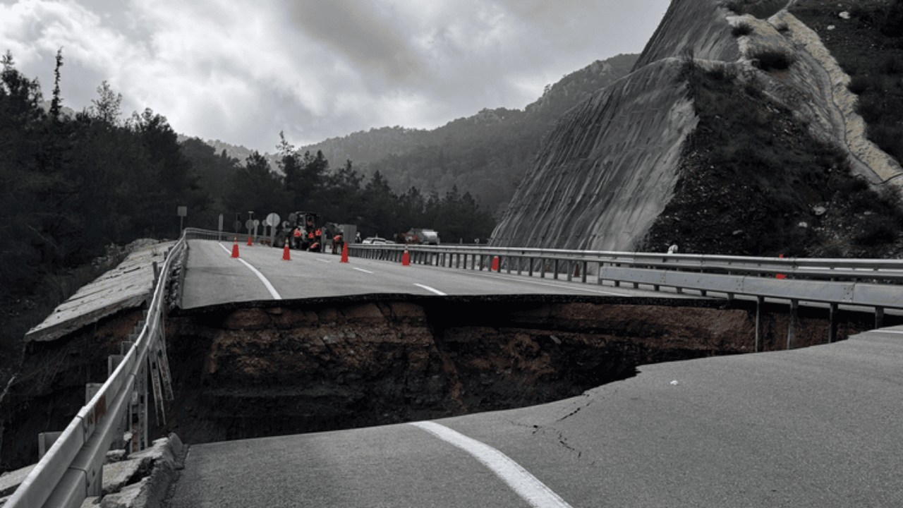 Antalya'nın Kumluca ve Kemer ilçelerini birbirine bağlayan karayolunda meydana gelen göçük ve heyelan nedeniyle yol trafiğe kısmen kapatıldı. Yolda oluşan yaklaşık 10 metrelik çukur sebebiyle ulaşım tek şeritten sağlanıyor.