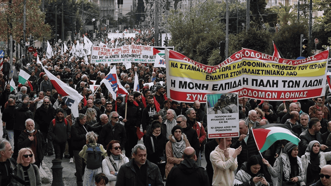 Yunanistan'ın başkenti Atina'da "Uluslararası Filistin ile Dayanışma Günü" kapsamında Filistin'e destek yürüyüşü düzenlendi.
