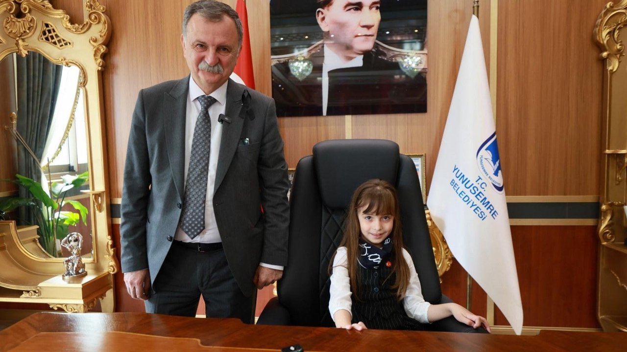 Manisa Yunusemre Belediye Başkanı Semih Balaban, 23 Nisan Ulusal Egemenlik ve Çocuk Bayramı’nda koltuğunu 23 Nisan Ulusal Egemenlik İlkokulu 1. sınıf öğrencisi Günnur Berrak Koç’a teslim etti. Küçük öğrencinin ilk talimatı ise ilçede daha fazla park yapılması oldu.