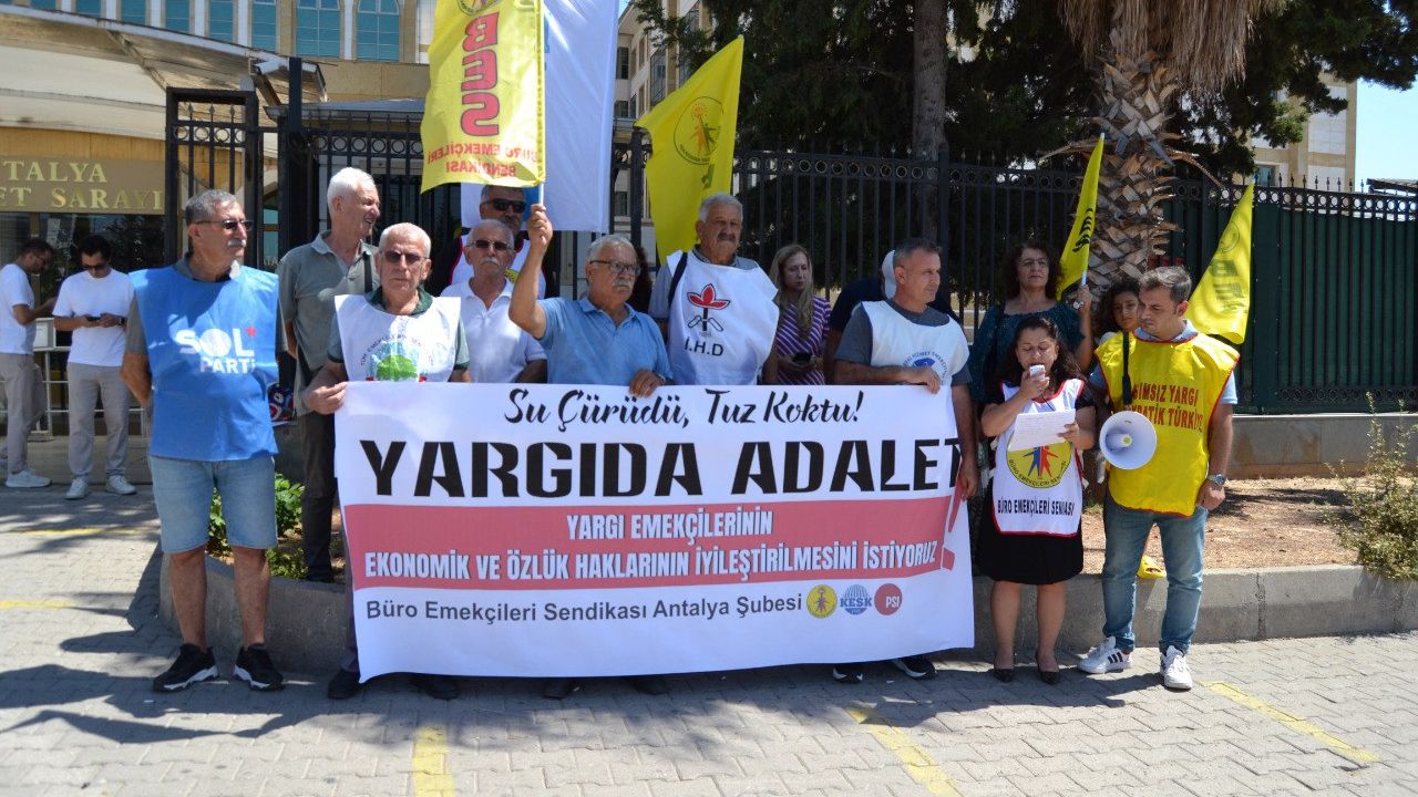 Büro Emekçileri Sendikası (BES) Antalya Şubesi, yeni adli yılın başlaması dolayısıyla Antalya Adliyesi önünde basın açıklaması yaptı. Açıklamada, yargı emekçilerinin artan iş yükü,… pic.twitter.com/DVxi5ffMpl