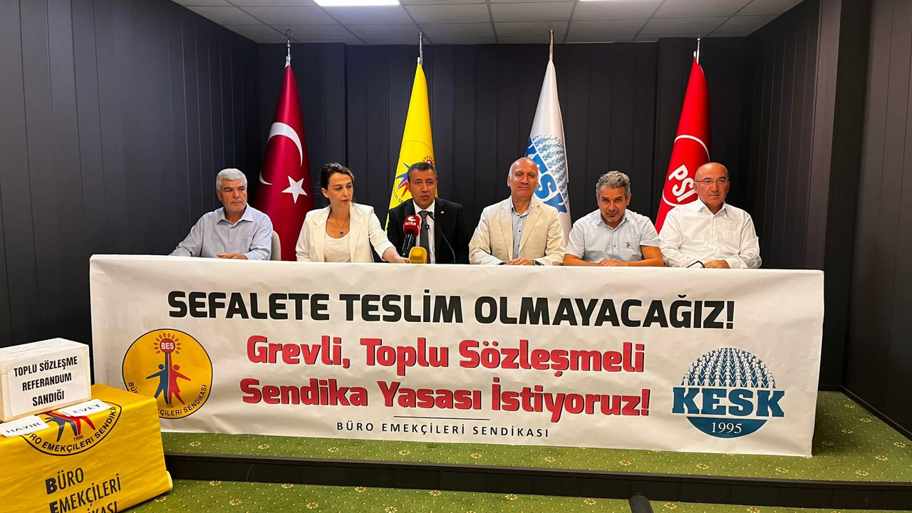 Büro Emekçileri Sendikası (BES) Genel Başkanı Özer Avanaş, 8. dönem toplu sözleşme görüşmelerine katılan sendikaların 2026-2027 yılları için iktidarın öngördüğü enflasyon oranlarına imza attığını ileri sürerek süreci eleştirdi. Avanaş, “Yandaşlar Hakem'e götürdü, biz emekçiye götürüyoruz” diyerek, 15 Eylül-15 Ekim tarihleri arasında işyerlerinde referandum sandıkları kuracaklarını açıkladı.
