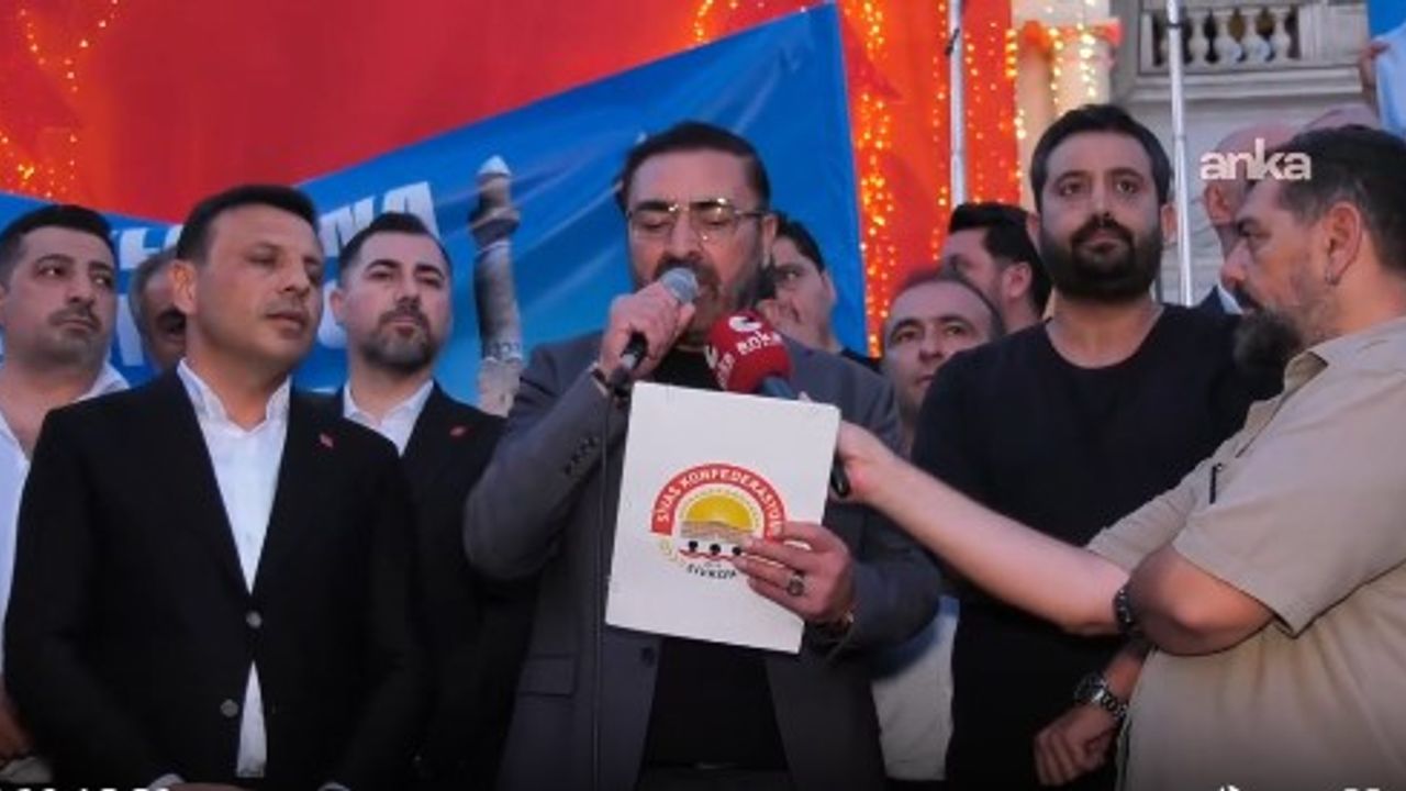 Sivas Bileşenleri, Beyoğlu Belediye Başkanı İnan Güney’in gözaltına alınmasına ilişkin belediye binası önünde açıklama yaptı.