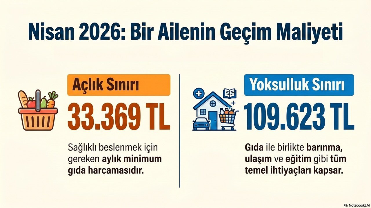 BİSAM tarafından yayımlanan raporda, hesaplamaların TÜİK zincir market cari ay internet fiyatları ve kurumun beslenme kalıbı üzerinden gerçekleştirildiği bilgisine yer verildi. Rapora göre, dört kişilik bir ailenin sağlıklı ve dengeli beslenmesi için yapması gereken aylık harcama tutarı Nisan 2026 için 33 bin 369 lira olarak kaydedildi. Bu tutarın sadece gıda için yapılması gereken minimum harcama olduğu vurgulanırken, hanehalkı tüketim harcamaları esas alınarak yapılan hesaplama sonuçlarına göre yoksulluk sınırı 109 bin 623 lira olarak gerçekleşti.