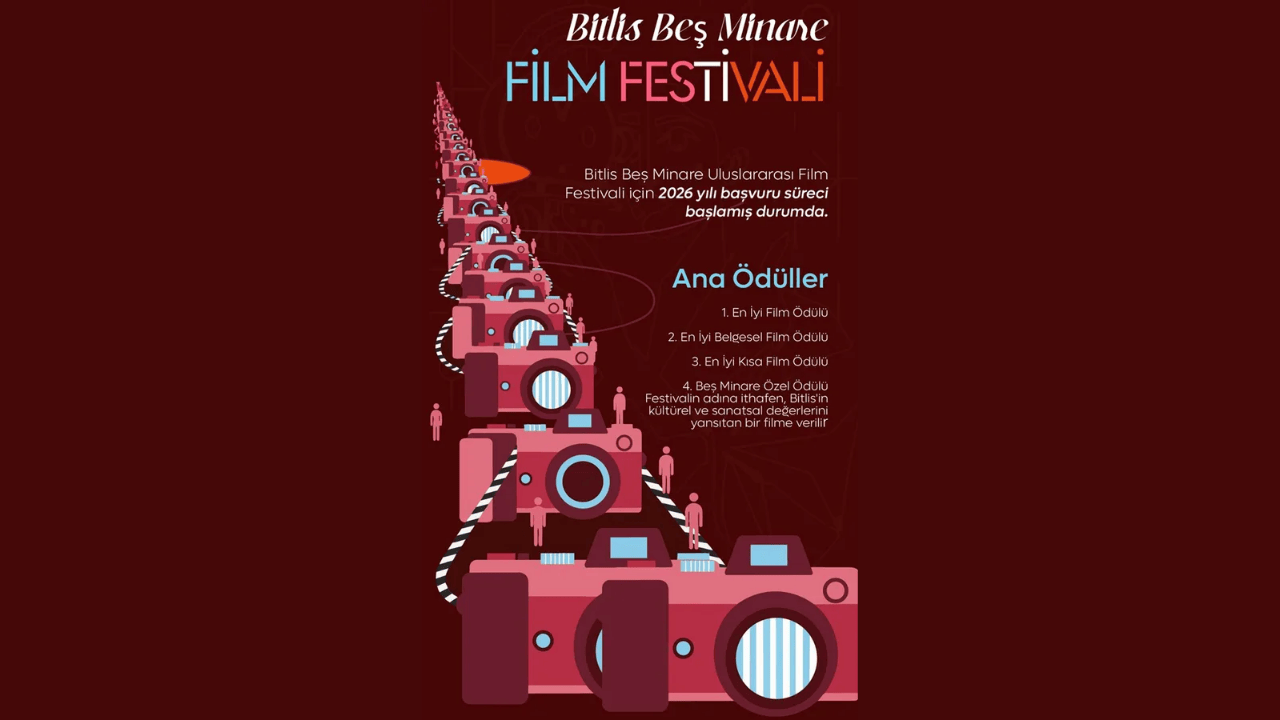 Bitlis Beş Minare Film Festivali, 6–10 Mayıs 2026 tarihlerinde gerçekleştirilecek. Şehrin tarihi dokusuyla sinemayı buluşturan etkinlik; kısa film, belgesel ve bağımsız yapımların yanı sıra kişisel anlatılara da ev sahipliği yapacak. Festival, sinemayı bir tanıklık ve hatırlama pratiği olarak ele alırken, merkezin dışında kalan ve görünmeyen sesleri görünür kılmayı hedefliyor.