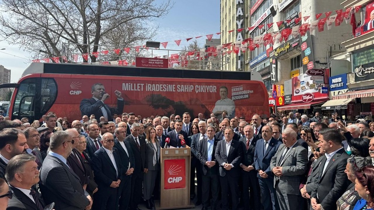 Cumhuriyet Halk Partisi (CHP) Ankara İl Başkanı Dr. Ümit Erkol'un tutuklanması sonrasında başlayan protestolar devam ediyor. CHP Genel Başkanı Özgür Özel'in çağrısı üzerine Ankara'da toplanan 81 ilin başkanı, Ankara İl Başkanlığı binası önünde bir araya gelerek hazırlanan ortak metni kamuoyuyla paylaştı.