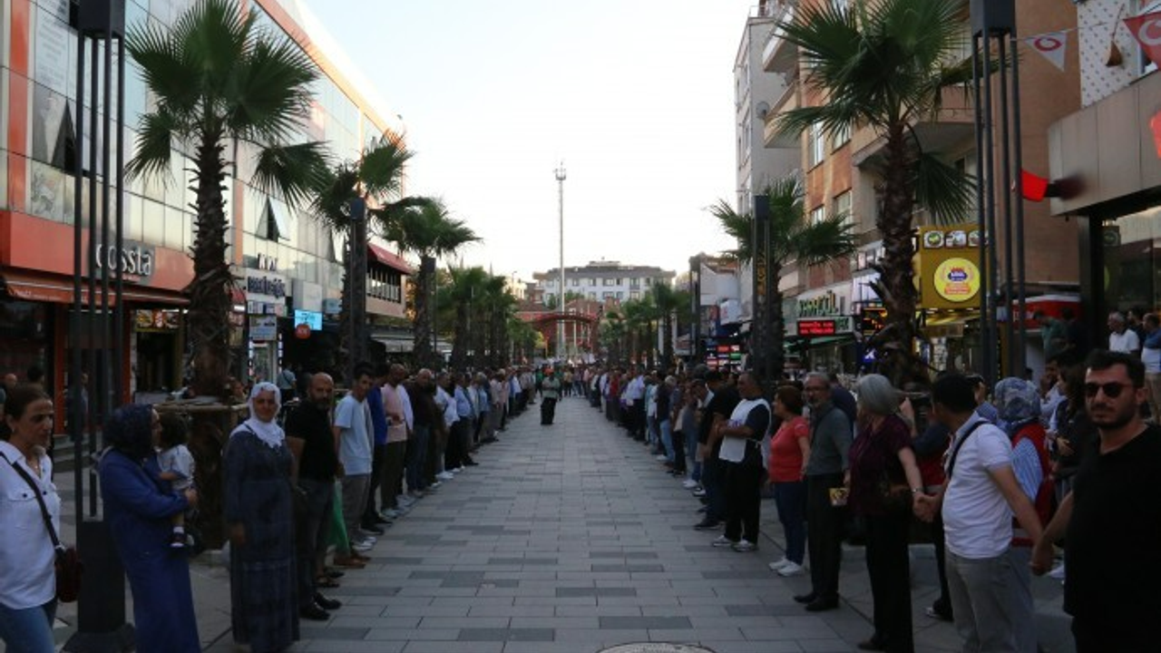"Barışın gücü ellerimizde, barış ve demokratik toplum içine el ele veriyoruz" pankartının açıldığı etkinliğe çok sayıda yurttaş katıldı.