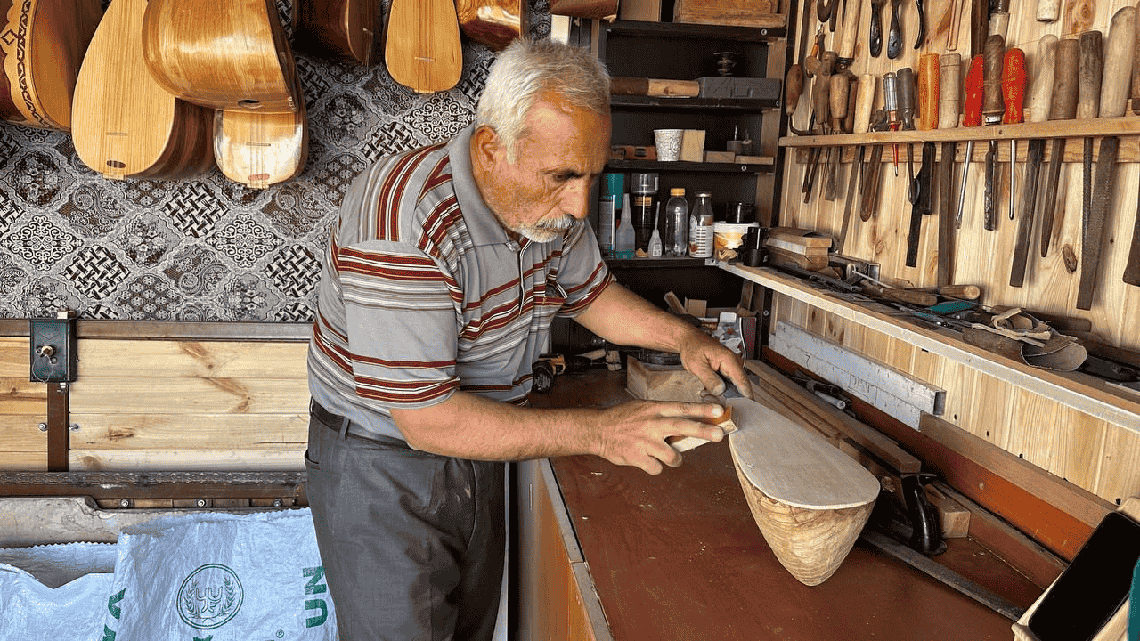 “Çocukluğumda köyümüzde sazlara karşı ilgim vardı ancak maddi imkânsızlık nedeniyle saz alamadım. Bu yüzden kendi sazımı yapmaya başladım. Usta-çırak ilişkisi olmadan, tamamen kendi tasarımım üzerine çalışarak öğrendim. Bugün profesyonel düzeyde sazlar yapıyorum. El emeğiyle oyma sazlar üretiyoruz. Bir sazın yapımı bir haftadan fazla sürüyor. Öğrenci sazlarından profesyonel sazlara kadar farklı seviyelerde üretim yapıyoruz. Yaptığımız sazlar tamamen el emeği, tut ağacından oyma olarak yapılıyor. Fiyatları 5 bin TL’den 15 bin TL’ye kadar değişiyor. Bu işi köyümüzde ve ailemizde yapan tek kişi benim.”