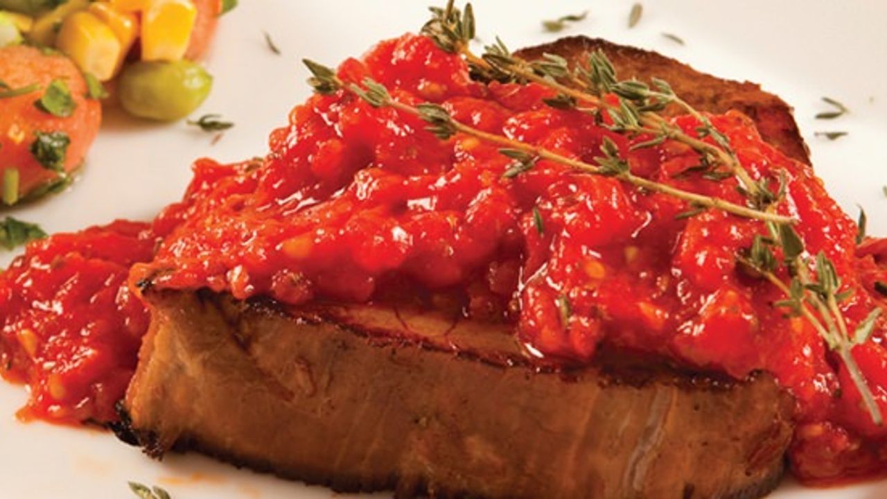 - Servis tabağına bonfileleri alın. Üzerine domates sosu ve garnitürü ekleyerek sıcak servis yapın.