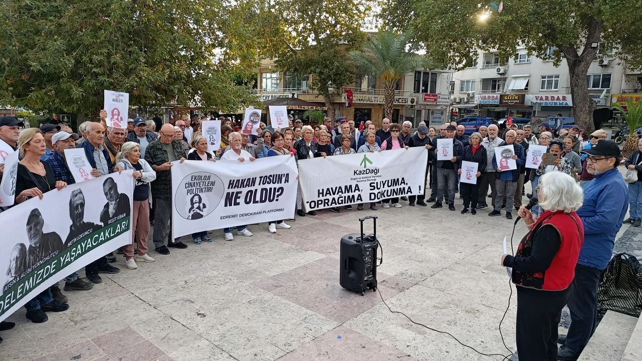 Edremit Demokrasi Platformu, ekoloji aktivisti ve gazeteci Hakan Tosun'un şüpheli ölümüne ilişkin adalet talebiyle Altınoluk Cumhuriyet Meydanı'nda bir araya geldi. Platform, Tosun'un ölümüne yol açan saldırının ardındaki "sis perdesinin" kaldırılmasını ve siyasi bağlantı iddialarının araştırılmasını istedi.