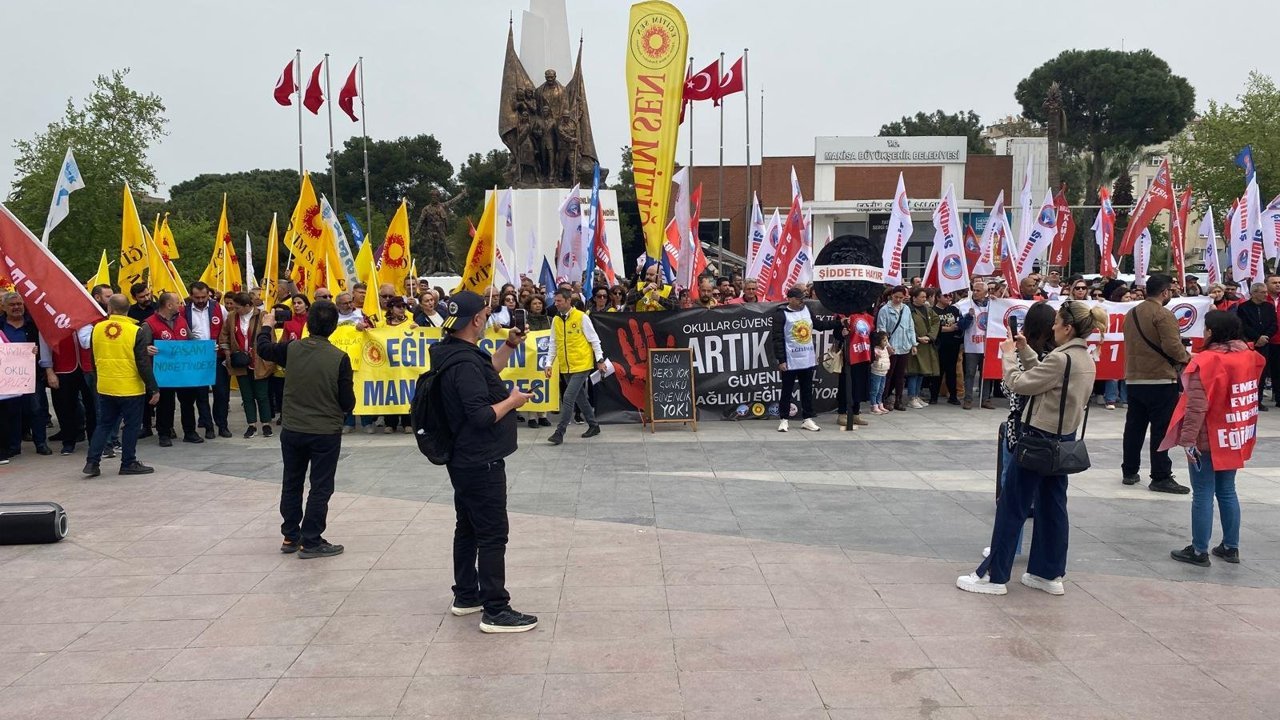 Basın açıklamasını Eğitim-İş Sendikası adına Aziz Deniz Oğuz, Eğitim-Sen Sendikası adına ise Manisa Şube Başkanı Mehmet Ramazan okudu.