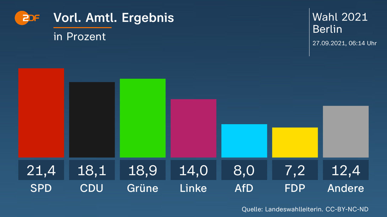 Uzun yıllardır yaşadığı düşüşü sonunda durdurdu, Başbakan adayı Olaf Scholz ile oylarını 5 puan kadar artırdı; birinci parti oldu. Olaf Scholz'un partisini aşan bir popülerliği sahip olduğu ifade ediliyor. Yeşiller ile sorunsuz bir işbirliği öngören Scholz'un şimdiki sınavı koalisyon için liberal FDP'yi ikna etmek. Aksi halde seçenek olarak yine SPD-CDU/CSU geniş koalisyonu kalıyor.
