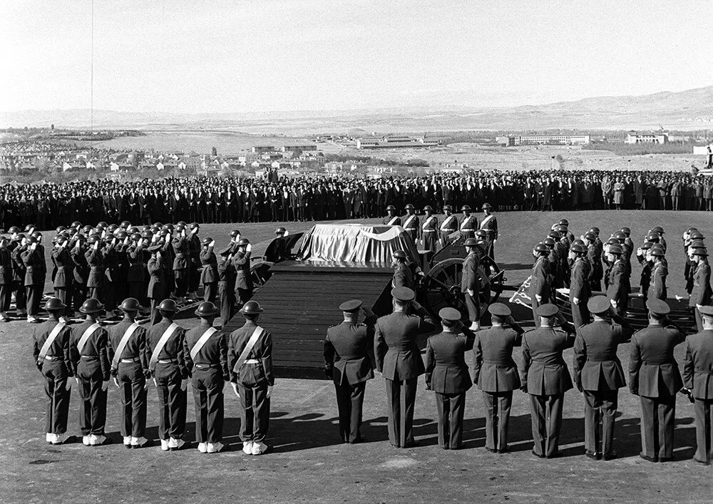 4 Kasım 1953 - Atatürk'ün naaşı Anıtkabir'e götürülmek üzere Etnoğrafya Müzesi'ndeki geçici kabrinden çıkarıldı.