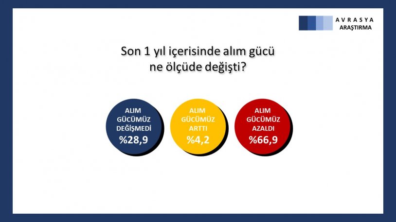 Avrasya Araştırma, 24-31 Ocak tarihleri arasında yapmış olduğu anket çalışmasını kamuoyu ile paylaştı.1860 kişinin katıldığı çalışmada Türkiye’nin en büyük sorunun ekonomi olduğunu söyleyenler yüzde 60’ın üstünde oldu.