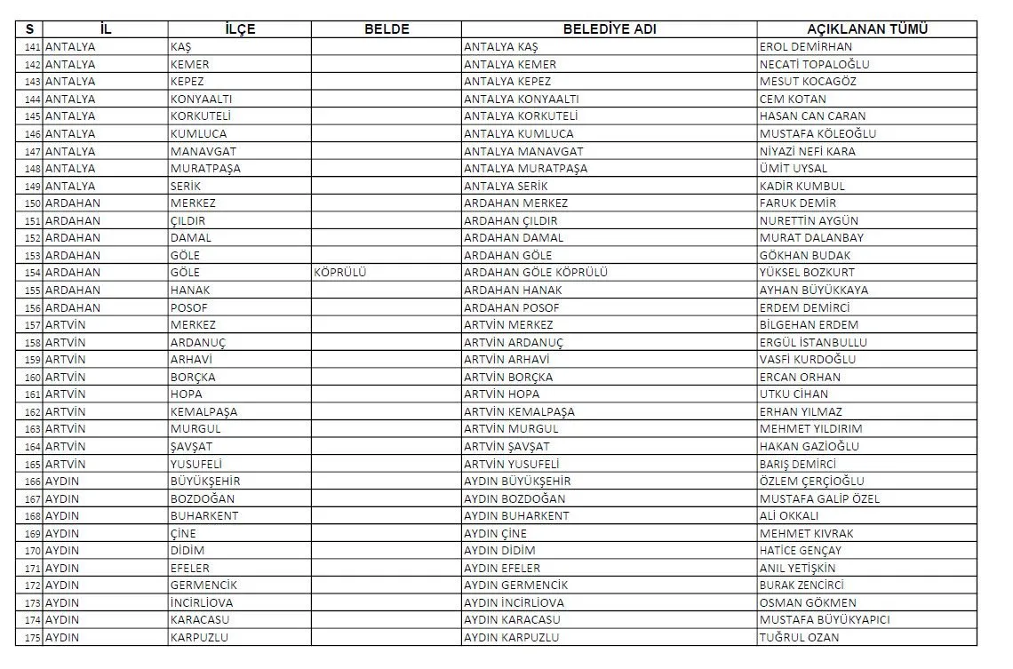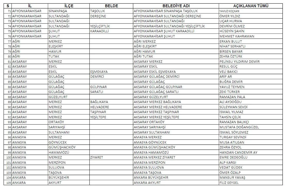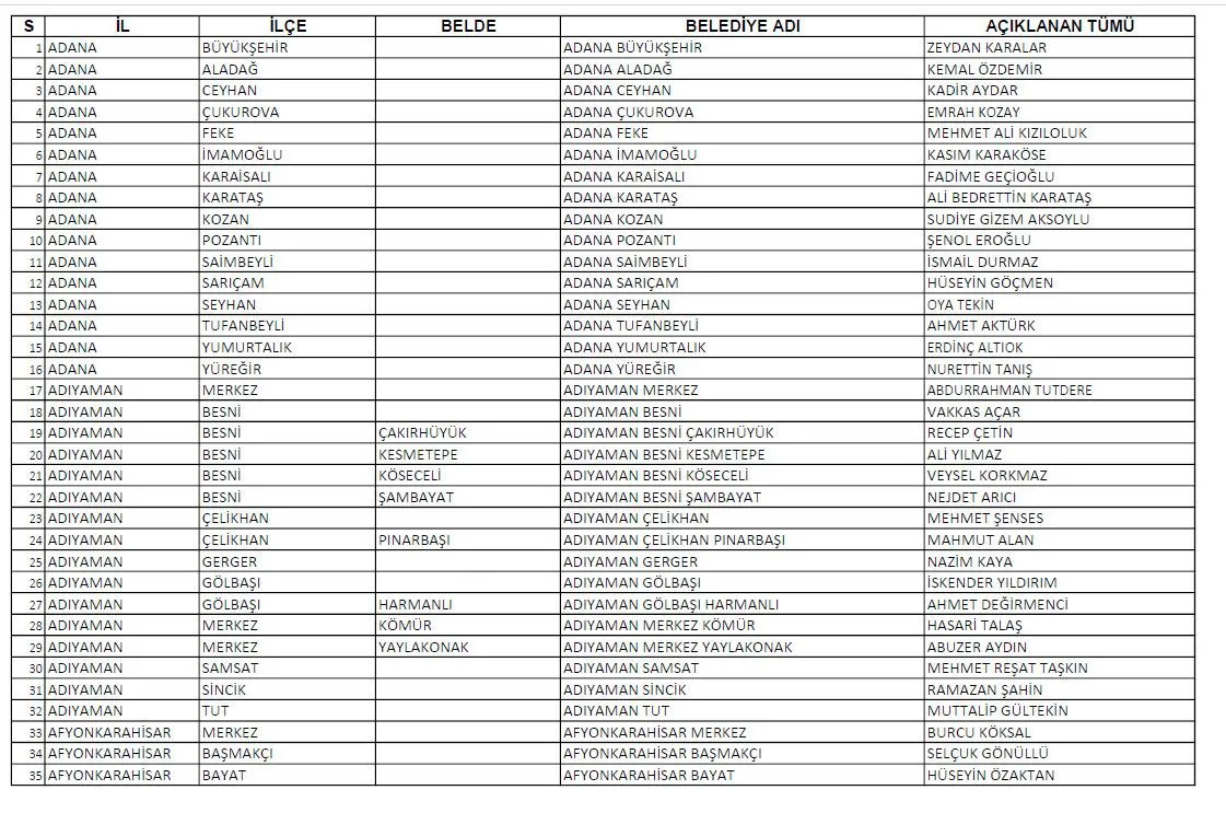 Cumhuriyet Halk Partisi bugün gerçekleştirilen aday tanıtım toplantısı ile 81 ilde Büyükşehir ve ilçelerde aday göstereceği adayları tanıttı. İşte il ve ilçe belediye başkan adaylarının tam listesi.