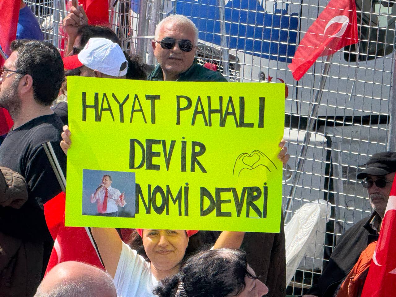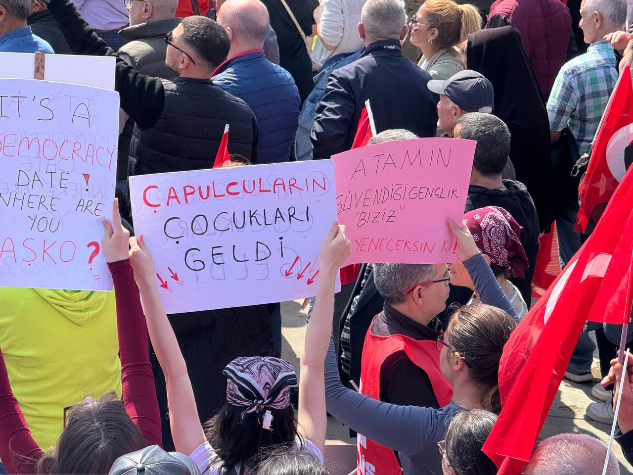 Tarihi miting meydanında yurttaşlar taleplerini birbirinden ilginç dövizlerle dile getirdi. Atatürk görselleri de her köşedeydi.