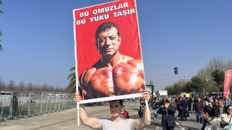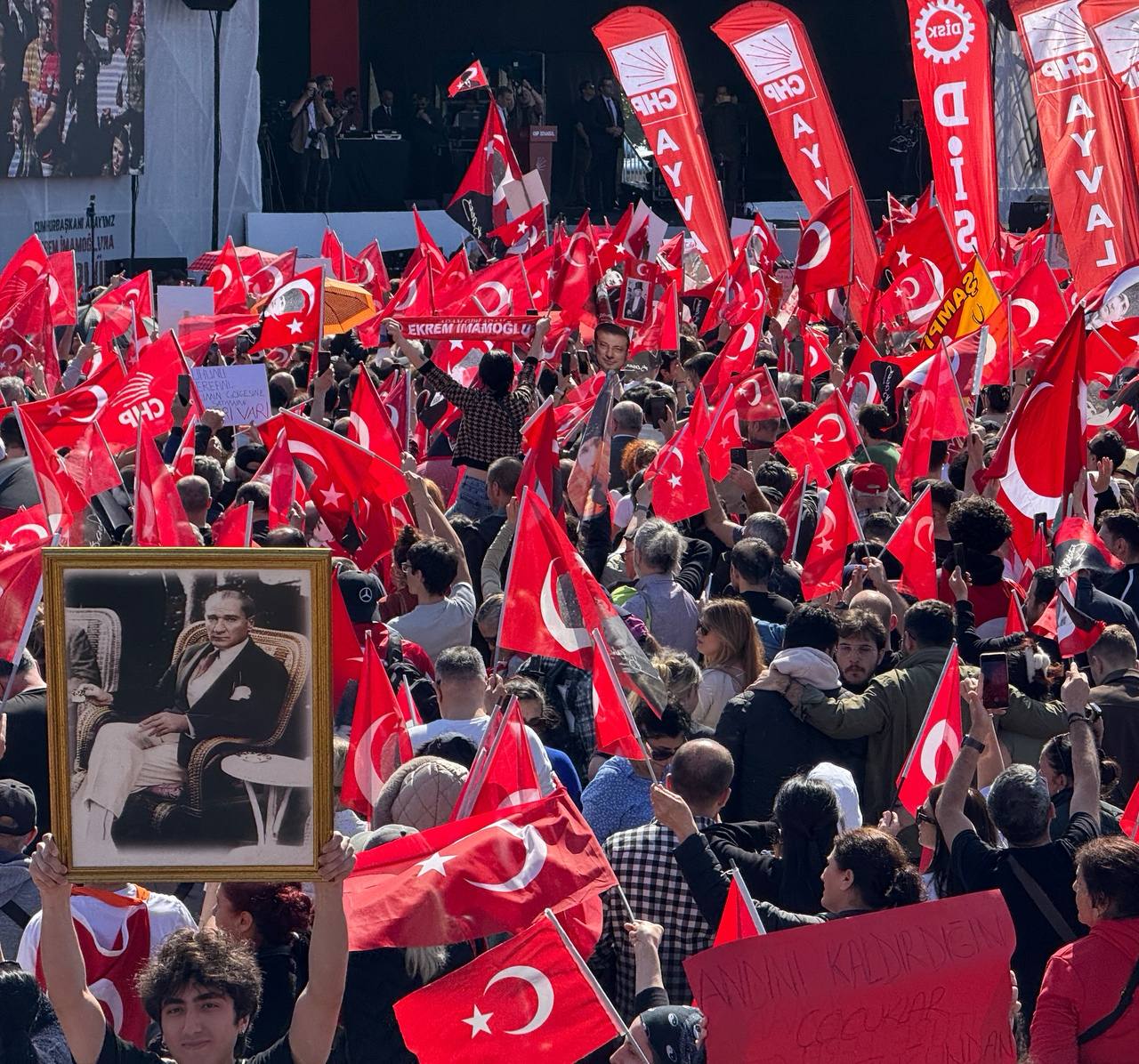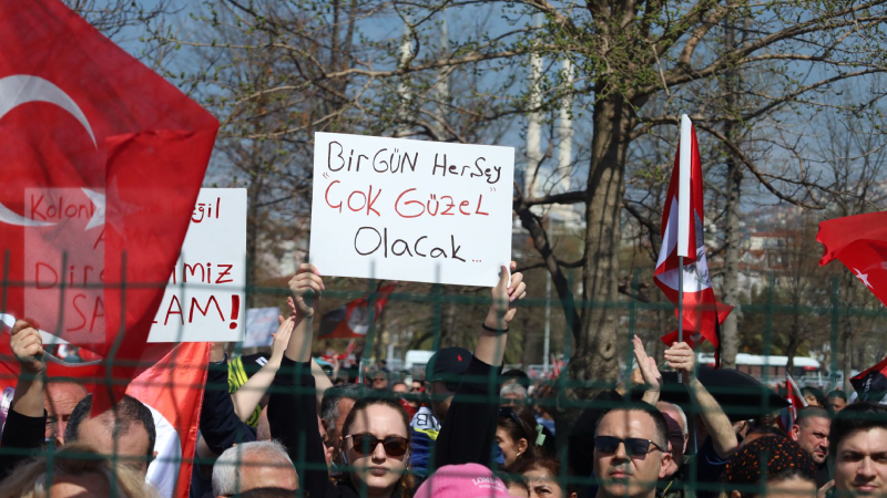 Ekrem İmamoğlu'nun tutuklanmadan önce başlattığı kampanyada kullandığı "Türkiye Kazanacak" sloganı meydanda pek çok yerde göze çarptı.
