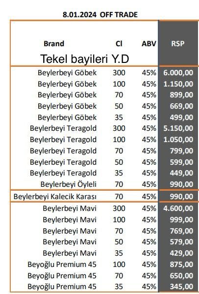 Paylaşılan bütün rakı gruplarında 100'lük şişe 1000 lirayı geçmiş oldu. İşte zamlı fiyatlar: