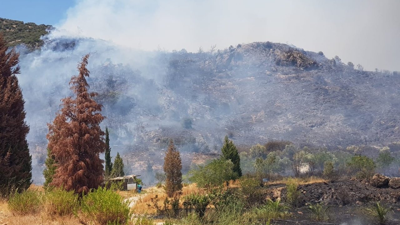 İhbar üzerine bölgeye İzmir Orman Bölge Müdürlüğüne bağlı 4 uçak, 4 helikopter, 12 arazöz, 4 su ikmal aracı, dozer ile 4 yer ekibi sevk edildi.