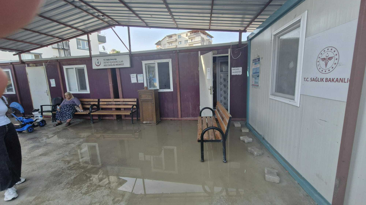 Hatay'ın Defne ilçesinde bulunan Aşağıokçular Sağlık Ocağı, dün gece yağan yoğun yağmurun ardından su altında kaldı. Sabah saatlerinde işe gelen sağlık çalışanları ve muayene için bekleyen vatandaşlar, su basan konteyneri birlikte temizlemeye çalıştı. Sağlık çalışanları, tüm zorlu koşullara rağmen Hatay’ı terk etmediklerini ve yetkililerden sorunlarının çözülmesini istediklerini belirtti.