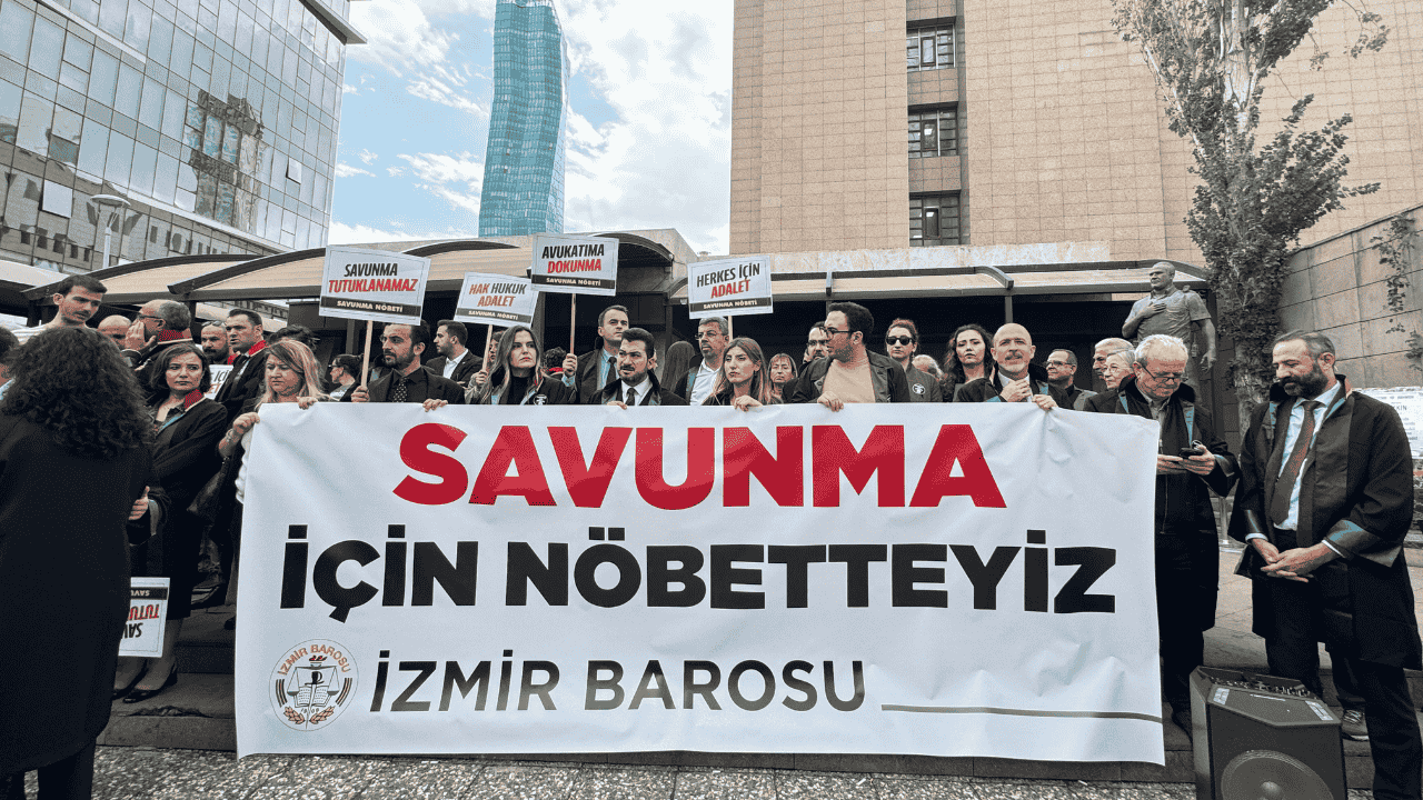 Türkiye’nin farklı illerinden gelen baro başkanları ve avukatlar, yargı bağımsızlığı ve hukuka yönelik baskıları protesto etmek amacıyla İzmir Adliyesi önünde “Savunma Nöbeti” eylemi gerçekleştirdi. Baro başkanları, avukatlara yönelik şiddet, tutuklamalar ve hukukun üstünlüğü ilkesinin ihlali konularına dikkat çekti.