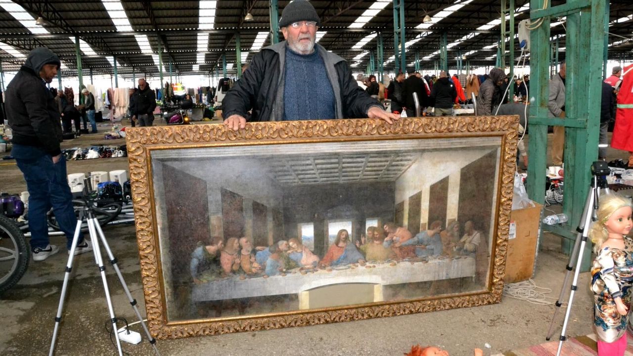 Manisa’da cuma günleri Perşembe Pazarı’nda kurulan ikinci el ürünlerin satıldığı Bit Pazarı’na vatandaşlar yoğun ilgi gösteriyor. İkinci el pazarında satışa sunulan ürünlerden biri de ünlü ressam Leonardo da Vinci tarafından yapılan ve İsa’nın On İki Havarisi ile birlikte son akşam yemeği sahnesini betimleyen Son Akşam Yemeği tablosu oldu. Pazarda sergilenen tablo ilgi görürken 40 bin TL’den satışa sunuldu.