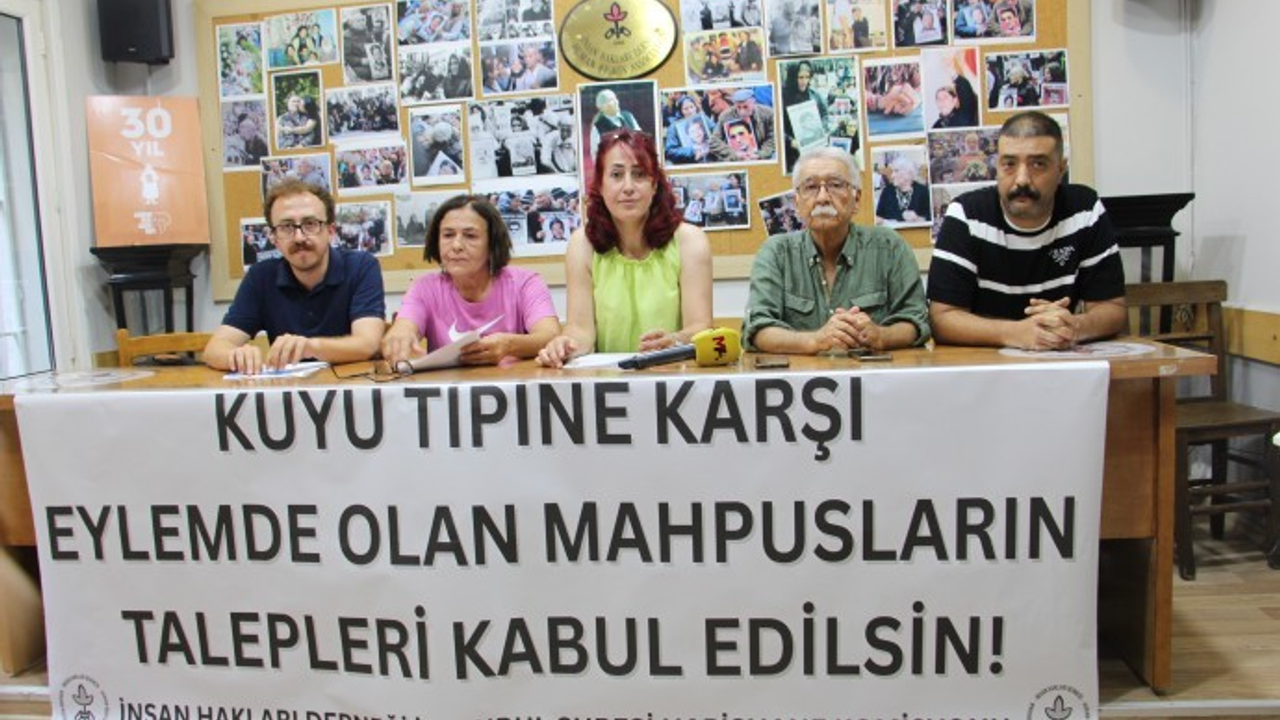 İnsan Hakları Derneği (İHD) İstanbul Şubesi, Beyoğlu’nda bulunan dernek binasında “kuyu tipi” cezaevlerinin kapatılması talebiyle açlık grevinde olan tutuklular için açıklama gerçekleştirdi. Açıklamaya Çağdaş Hukukçular Derneği (ÇHD) üyelerinin yanı sıra Tutsaklarla Dayanışma İnisiyatifi (TDİ) temsilcileri katıldı. Salona, “Kuyu tipine karşı eylemde olan mahpusların talepleri kabul edilsin” pankartı asıldı.