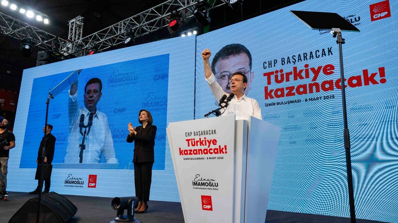 CHP’nin ön seçimdeki Cumhurbaşkanı adayı, Türkiye Belediyeler Birliği (TBB) ve İstanbul Büyükşehir Belediye (İBB) Başkanı Ekrem İmamoğlu, ön seçime yönelik buluşmalarına İzmir’den başladı. Mustafa Kemal Atatürk Karşıyaka Spor Salonu’nda gerçekleştirilen İzmir Buluşması’na Manisa, Aydın, Muğla, Uşak ve Denizli’nin il, ilçe örgütleri ile belediye başkanları da katıldı. On binlerin geldiği buluşmada, “Kurtuluş yok tek başına ya hep beraber ya hiçbirimiz”, “Mustafa Kemal’in askerleriyiz” sloganları atıldı. Konuşmasını yapmak üzere sahneye çıkan İmamoğlu, “Ceketi çıkar, kolları sıva” sloganlarının ardından konuşmasına ceketini çıkarıp, kollarını sıvayarak başladı.