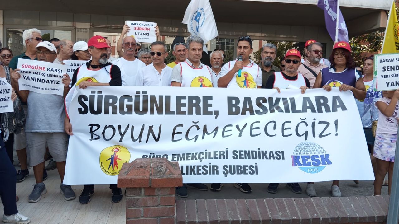 Türkiye İş Kurumu (İŞKUR) Genel Müdürlüğüne bağlı İŞKUR Edremit biriminde görev yapan, aynı zamanda Büro Emekçileri Sendikası (BES) yönetici ve üyesi 3 çalışan, 'görevlendirme' adı altında Balıkesir İl Müdürlüğü ve Bandırma Hizmet Merkezi Müdürlüğüne gönderildi. Bu durumu 'sürgün' olarak değerlendiren ve sendikal faaliyetin engellenmeye çalışıldığına dikkat çeken kamu emekçileri, İŞKUR Edremit hizmet binası önünde basın açıklaması yaparak kararı protesto ettiler.