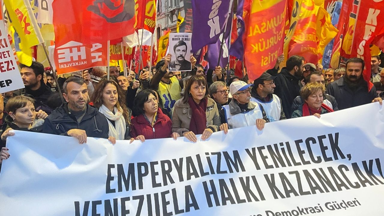 İstanbul Emek, Barış ve Demokrasi Güçleri adına açıklamayı Muhammed Hizmetçi okudu. Açıklamada, 3 Ocak gecesi Venezuela'nın yerel saatiyle 02.00 sıralarında Karakas yakınlarındaki Fort Tiuna başta olmak üzere çok sayıda askeri üs, havaalanı, liman ve Karakas kent merkezinin ABD savaş uçakları ve helikopterleri tarafından bombalandığı hatırlatılarak, Venezuela Devlet Başkanı Nicolas Maduro ve eşi Cilia Flores’in düzenlenen operasyonla zorla Amerika’ya götürüldüğü ve tutsak edildiği belirtildi.