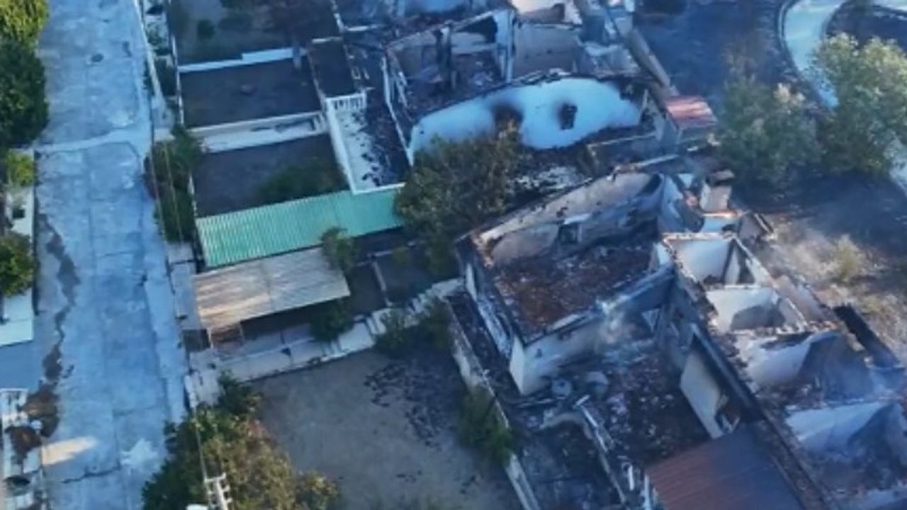 Öte yandan yangından zarar gören Doğankent Sitesi havadan görüntülendi.
