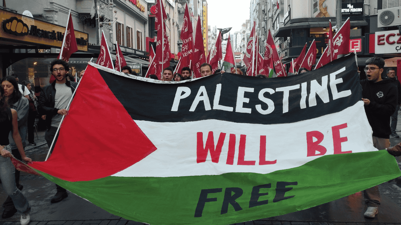 İsrail’in Filistin’e yönelik saldırıları sürerken, İzmir Emek ve Demokrasi Güçleri üyeleri Alsancak’taki ÖSYM binası önünde toplandı. Açıklamaya öğrenci oluşumları ve sol siyasi partiler de destek verdi. Yüzlerce vatandaş, "Hamaseti bırak, ticareti kes", "Katil ABD Orta Doğu’dan defol" ve "Nehirden denize özgür Filistin" sloganları atarak Türkan Saylan Kültür Merkezi’ne yürüdü.