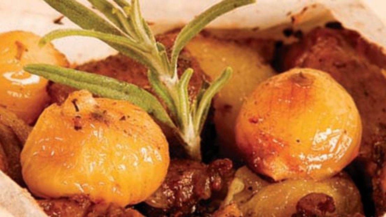 - Ortasına hazırladığınız kuzu etini yayın ve kağıdı rulo halinde sarıp uç kısımları da bükün. Önceden ısıttığınız 180 dereceye ayarlı fırında yaklaşık 60 dakika pişirin.