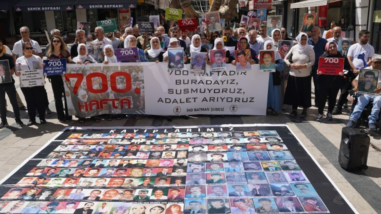 İHD Batman Şubesi ve kayıp yakınları, 700. haftalarında "700 haftadır buradayız, susmuyoruz, adalet arıyoruz" pankartıyla İnsan Hakları Anıtı önünde toplandı. İHD Bölge Temsilcisi Tahir Saçaklı, bu mücadelenin demokratikleşme süreci için kritik olduğunu ve kayıp yakınlarının dinlenmesi gerektiğini vurguladı.