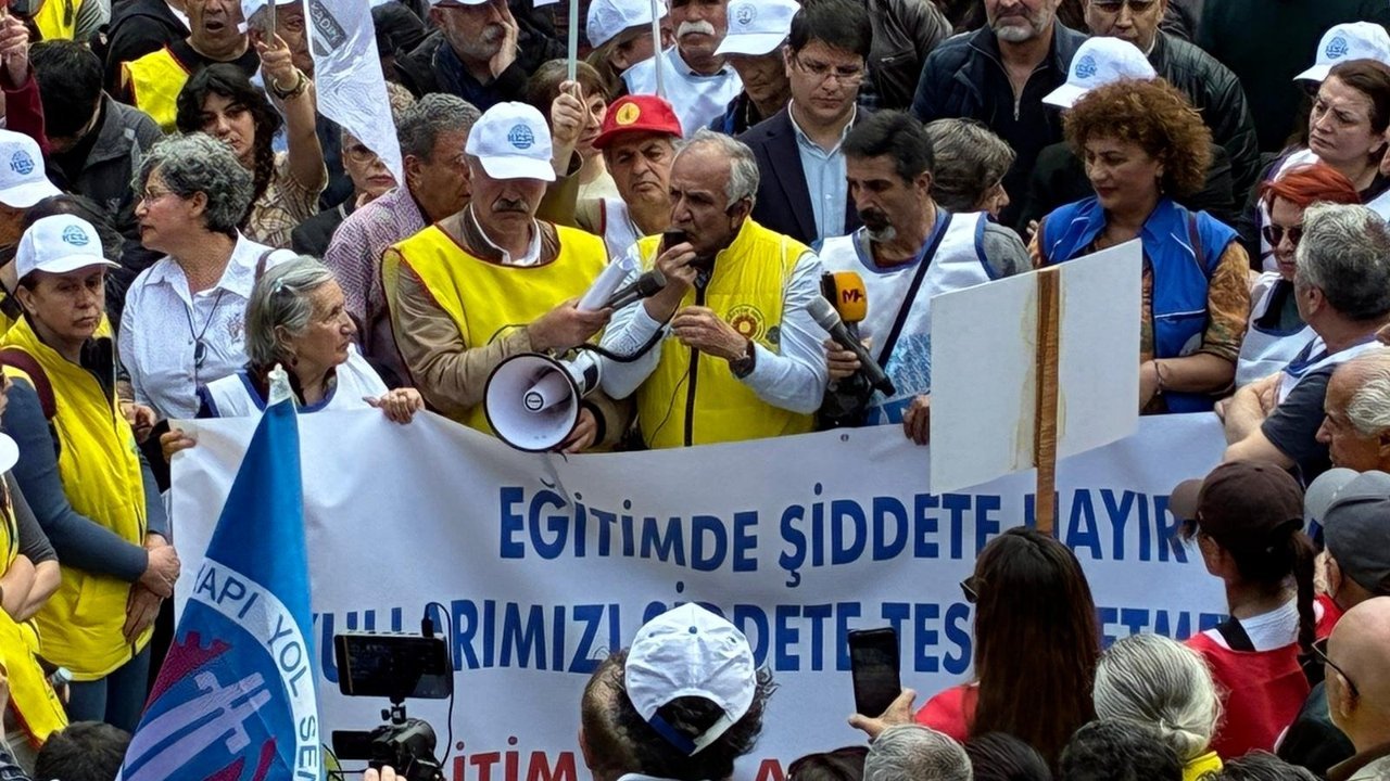 Milli Eğitim Bakanlığı binası önünde açıklamalarda bulunan Eğitim Sen Genel Başkanı Kemal Irmak, "Bu topraklarda inancı, dili, rengi ne olursa olsun herkesin bir arada kardeşçe ama özgür eğitim ortamlarında bir arada yaşamasını savunacağız" dedi. Okullardaki güvenlik sorununa ve pedagojik yaklaşıma dikkat çeken Irmak, şöyle konuştu: