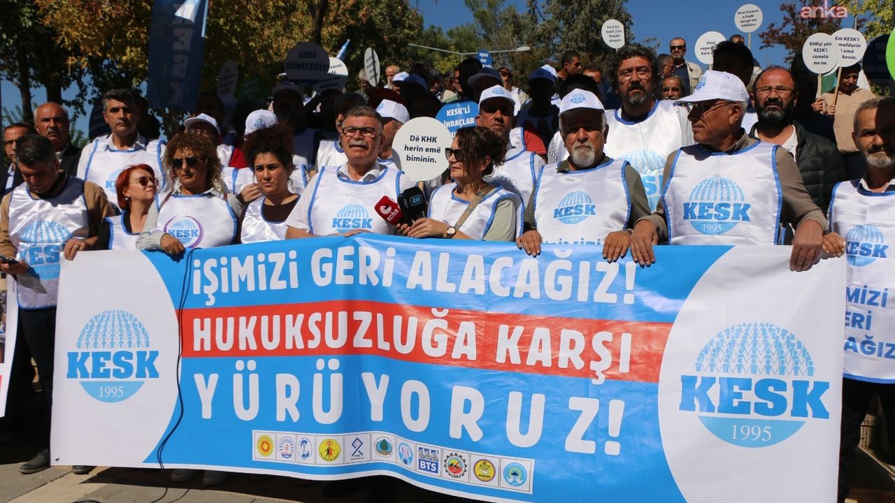 Kamu Emekçileri Sendikaları Konfederasyonu (KESK), kanun hükmünde kararname (KHK) ile ihraç edilen kamu çalışanlarının görevlerine iadesi talebiyle düzenlediği yürüyüşe Adıyaman'da devam etti. "Adalet, Eşitlik ve İşimizi Geri Almak İçin Yürüyoruz" sloganıyla düzenlenen eylemde konuşan KESK Eş Genel Başkanı Ahmet Karagöz, "Biz bu ülkenin hukuk içinde, barış içinde, eşit yurttaşlık temelinde yönetilmesini istiyoruz" ifadelerini kullandı.