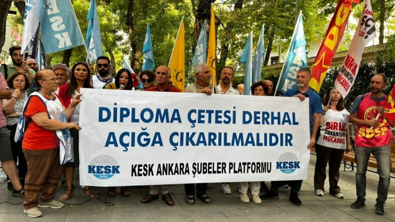 Mezopotamya Ajansı'nın haberine göre KESK Ankara Şubeler Platformu, sahte diplomalara ilişkin açıklama yaparak, "Kendimizden geçtik; gençlerimiz için vakit daha da geç olmadan harekete geçmeli, hesap sormalı ve sesimizi yükseltmeliyiz” çağrısı yaptı.