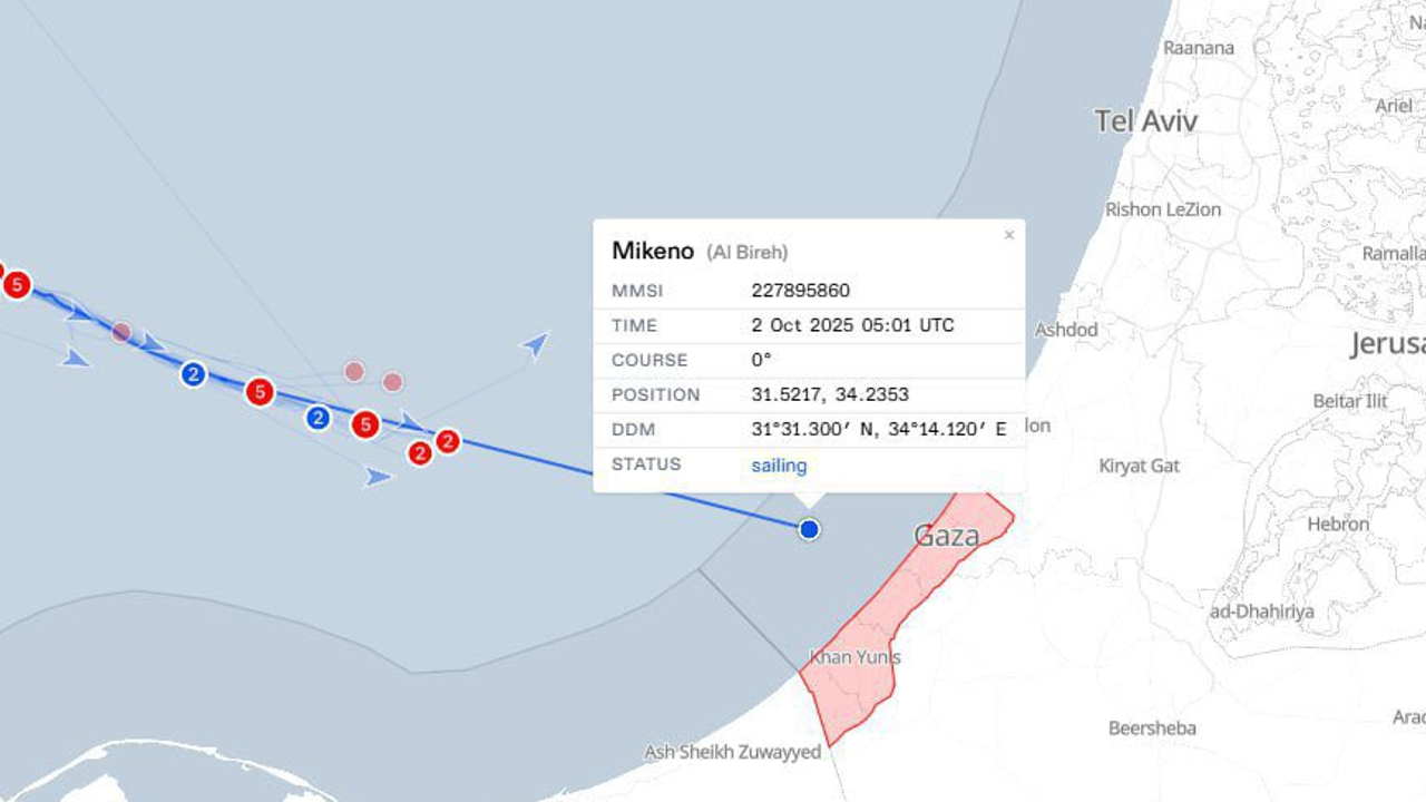 Yoluna devam eden gemilerden biri olan "Mikeno" isimli teknenin, Gazze'ye yaklaşık 9,3 mil (17.2 km) uzaklıkta Gazze kara sularına girdiği bilgisi paylaşıldı.
