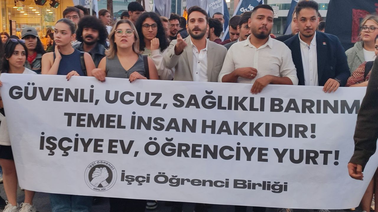 Yurt önünde düzenlenen eylemde öğrenciler, “Güvenli, ucuz, sağlıklı barınma temel insan hakkıdır. İşçiye ev, öğrenciye yurt” pankartı açarak, “Taciz değil, barınmak istiyoruz”, “Tacizsiz yurtlar, tacizsiz Türkiye” “KYK uyuma, öğrencine sahip çık” sloganları atıldı.
