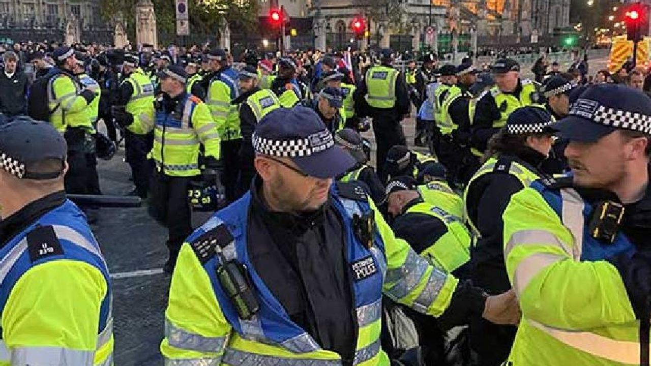 Polisin dağılma uyarısına rağmen eyleme devam eden ve cezaevi personel girişine yönelen göstericilere müdahale edildi. Londra Metropolitan Polisi, yaptığı yazılı açıklamada, "izinsiz giriş" şüphesiyle 86 kişinin gözaltına alındığını duyurdu.