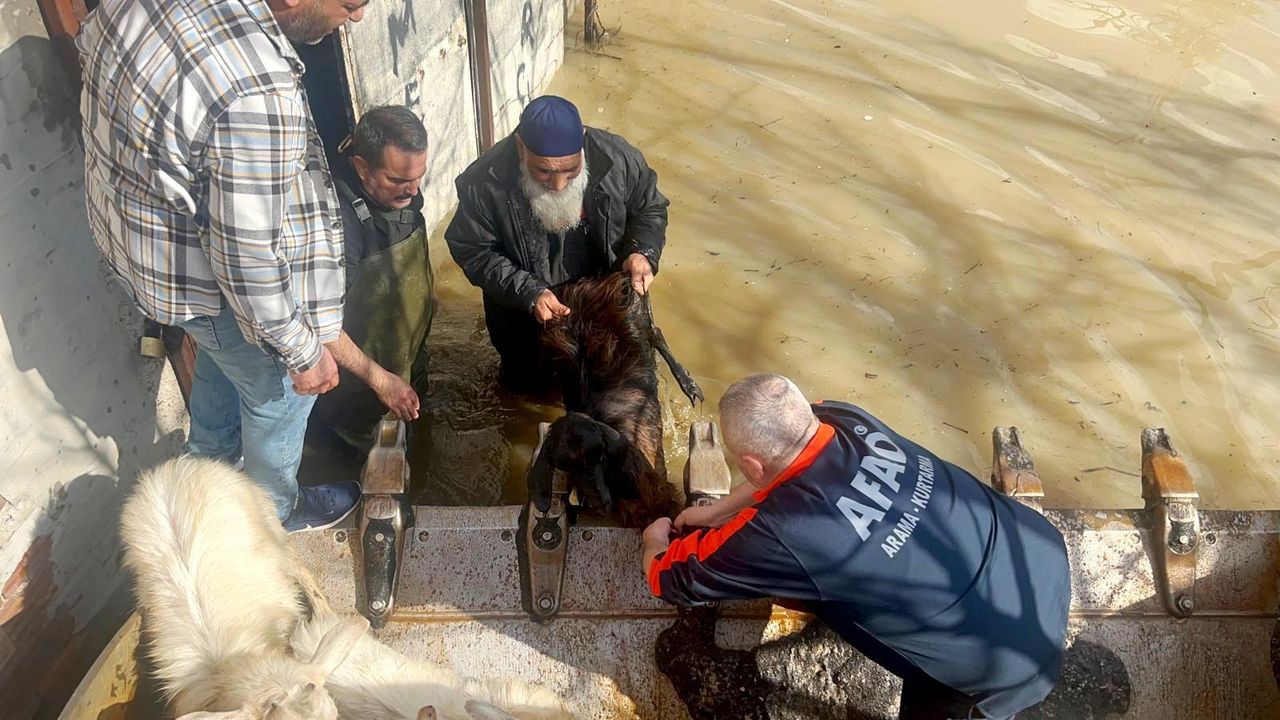 Manisa Gediz Ovası’nda sağanak yağmurun sele dönüşmesi sonrasında besi çiftlikleri ve bağ damlarında mahsur kalan vatandaşlar ile hayvanlar, Manisa Valiliği’ne bağlı AFAD ekiplerince saatler süren operasyonlarla böyle kurtarıldı.