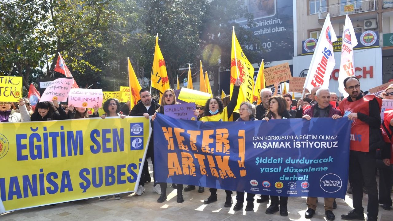 Manisa’daki 15 Temmuz Demokrasi Meydanı’nda toplanan grup, eğitim kurumlarında yaşanan saldırılara ve güvenlik yetersizliklerine dikkat çekmek amacıyla bir protesto gösterisi gerçekleştirdi. Katılımcılar, öğretmenlerin can güvenliğinin sağlanması için acil önlem alınması çağrısında bulundu.