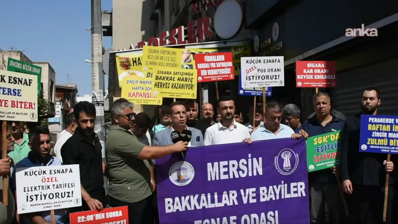 Mersin'de toplanan bakkal ve bayiler, "Küçük esnaf biterse Türkiye biter" ve "Zincir marketler hafta sonu kapansın" gibi taleplerin yazılı olduğu dövizler taşıdı. Oda Başkanı Ramazan Turan, Bağ-Kur primleri ve emeklilik koşullarının esnafı mağdur ettiğini belirtti. Yanlarında çalışanların emekli olmasına rağmen kendilerinin 9 bin gün prim gününü doldurmak zorunda kaldıklarını vurgulayan Turan, "Ben buradan sesleniyorum; benim esnafımın yüzde 80'i Bağ-Kur primlerini ödeyemiyor" dedi.