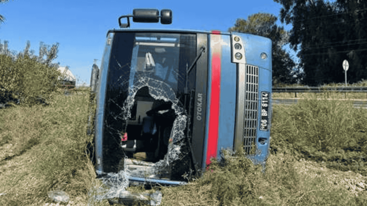 Sürücüsünün ismi öğrenilemeyen 06 BP 8114 plakalı midibüs, Alifakı Mahallesi'nde yol kenarındaki otluk alana devrildi.