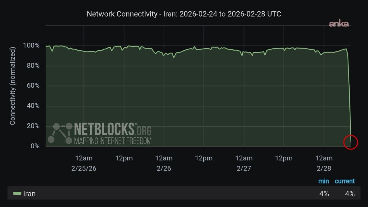 NetBlocks tarafından paylaşılan ağ verilerine göre, ülkedeki bağlantı oranı oldukça kısa bir zaman zarfında dramatik bir biçimde gerileyerek asgari seviyeye indi. Kuruluş, söz konusu kesintinin Amerika Birleşik Devletleri (ABD) ve İsrail’in İran’a yönelik başlattığı askeri operasyonların ardından gerçekleştiğini belirtti.