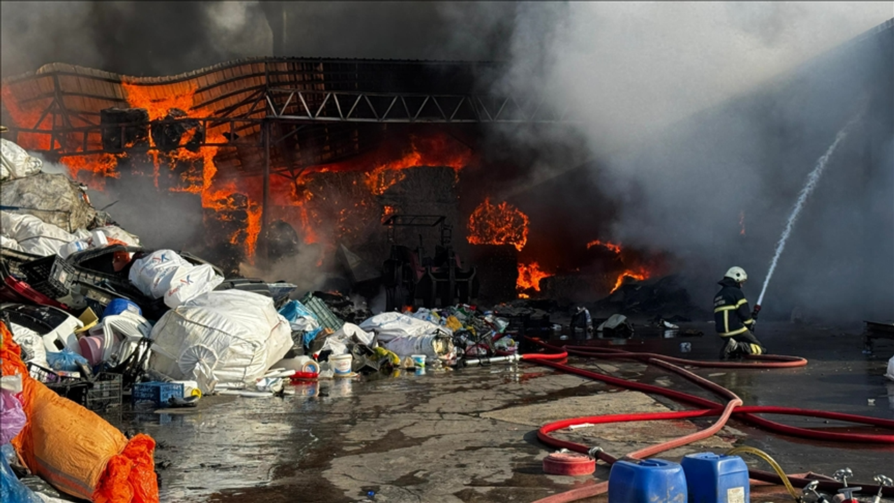 lçedeki organize sanayi bölgesinde yer alan kağıt ve plastik gibi malzemelerin yer aldığı geri dönüşüm tesisinde, henüz belirlenemeyen nedenle yangın çıktı.